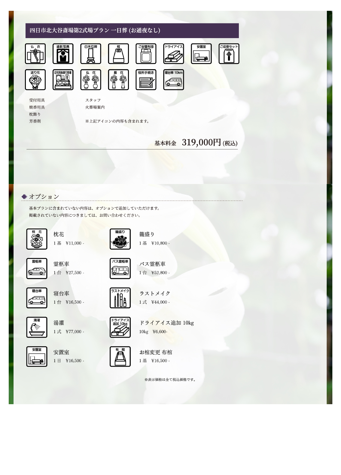 四日市北大谷斎場第2式場プラン 一日葬 (お通夜なし)